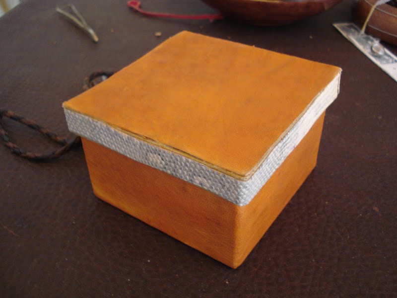puis j'ai rajouté une bandelette de peau de lézard sur le côté du couvercle.